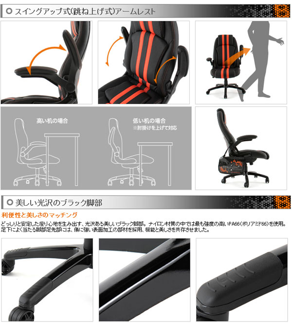 | 構造部材 | 背部:スチール、座部:合板、肘掛部:ナイロン、ポリプロピレン脚部、キャスター:ナイロン、座受金属部:スチール、座受金属部カバー:ポリプロピレン |