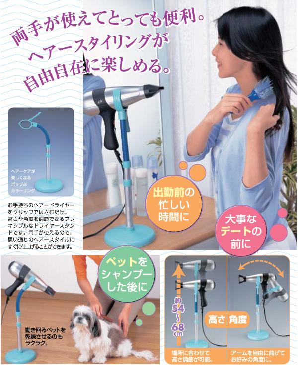 ・高さや角度も自由に調節できるので、ドライヤーも扱いやすく、とっても便利!